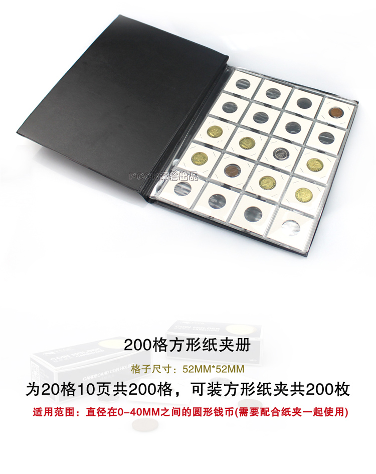 PCCB Square Paper Clip Book Coin Book 200 Grid Coin Commemorative Coin Book Copper Yuan Ancient Coin Collection Book Location Book