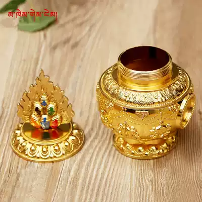 Treasure bottle Tibetan God of Wealth Treasure bottle ornaments Painted gold-plated eight auspicious alloy treasure bottle Dragon King Jizang 18cm Extra large