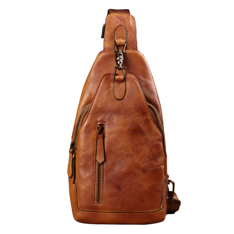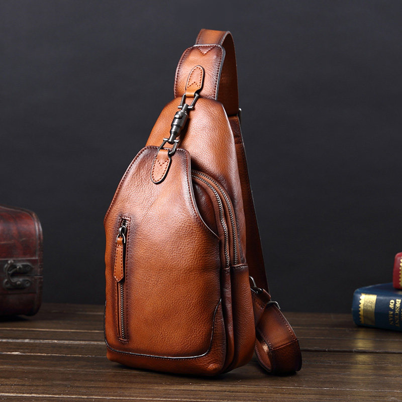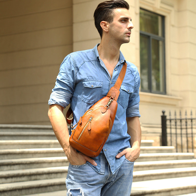 Vinny Cheerful Leather Chest Bag Men's Boomer Chest Front Baotou Layer Bull Leather Bag Casual Twill Shoulder Bag single shoulder bag Shoulder Bag Retro