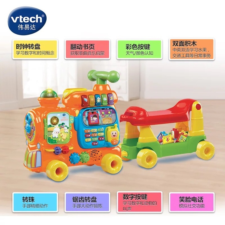Weila four - in - one train pedal walking train learning English digital pro - intelligence building toys 1 - 3 years old