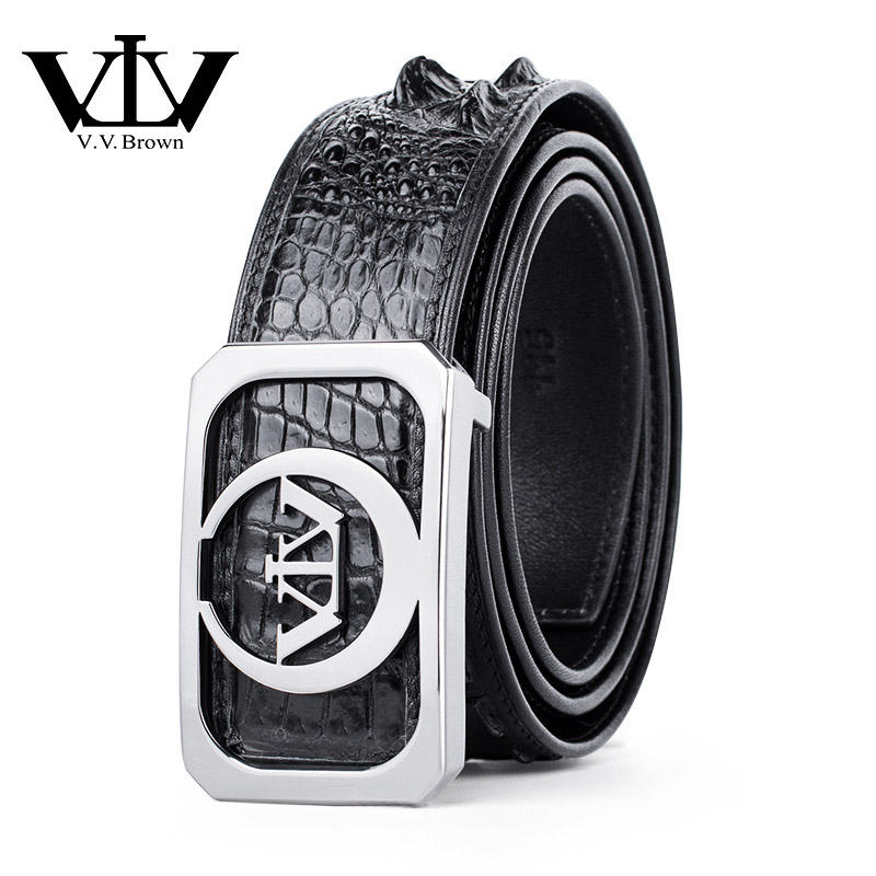 V V Brown VTV crocodile leather belt men's smooth buckle belt for middle-aged and young people genuine leather gift pants belt