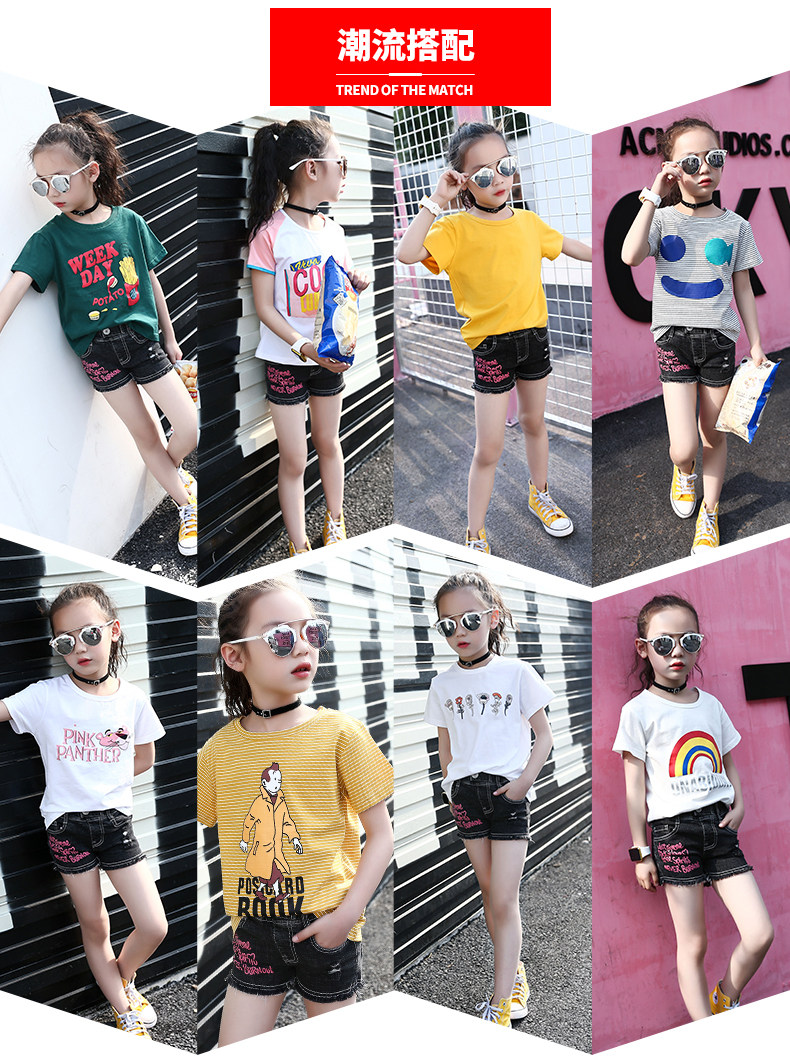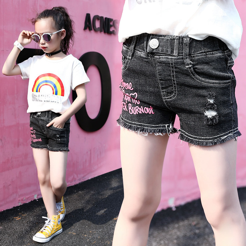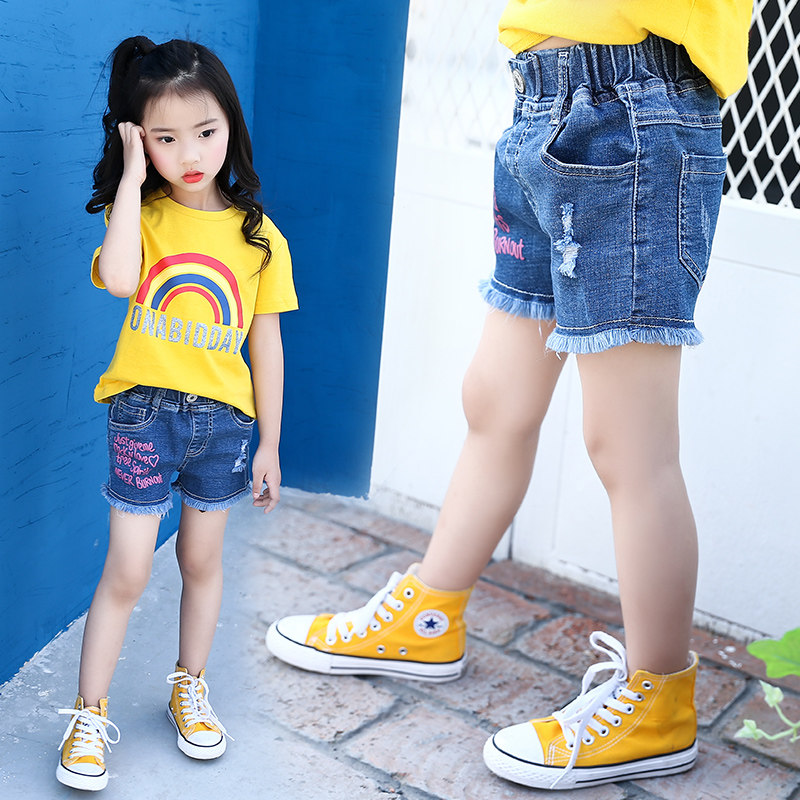 Girls denim shorts 2021 new summer children's ripped denim hot pants foreign style in the big children's casual pants tide