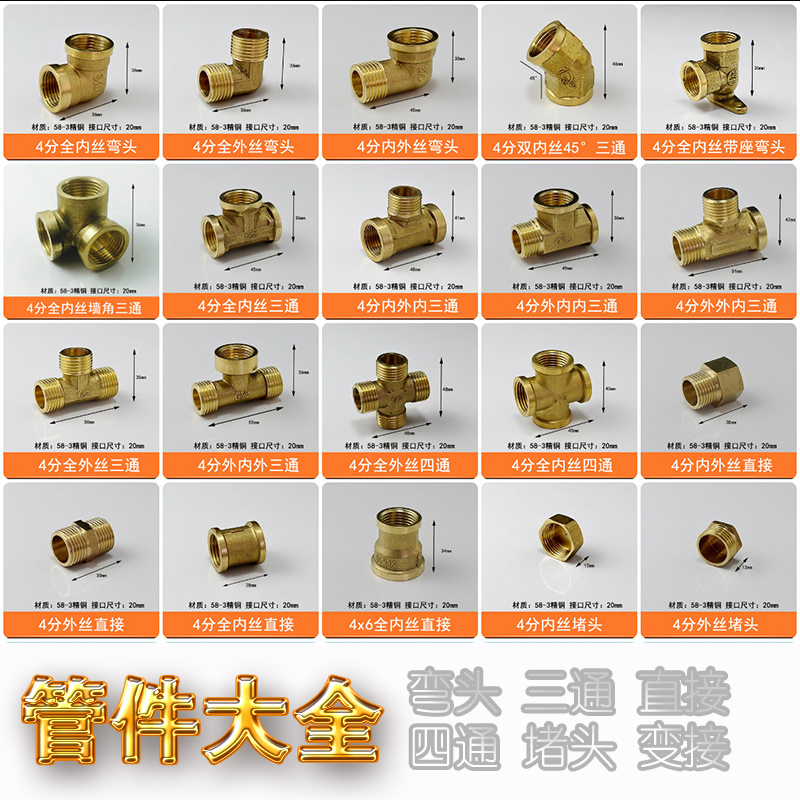 4 points to 6 points all-copper inner and outer wire inner wire direct elbow tee to wire four-way size head joint plug pipe fittings