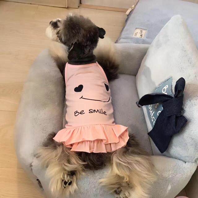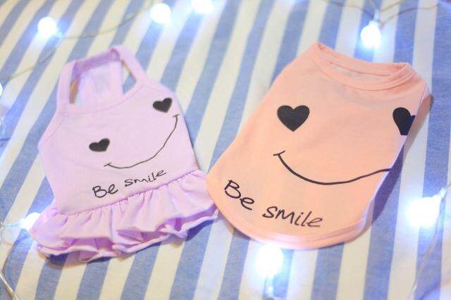 2 Pieces Three Colors Imitation Korean Version Pet Cute Smiley Face Couple Clothes Cat Dog Pure Cotton Vest Foreign Dress