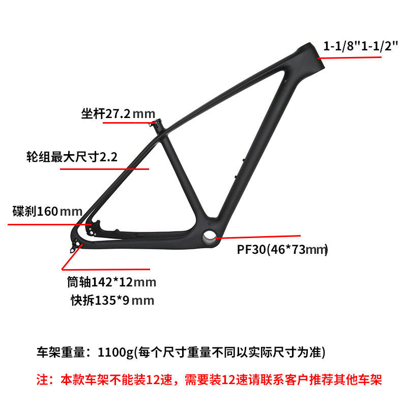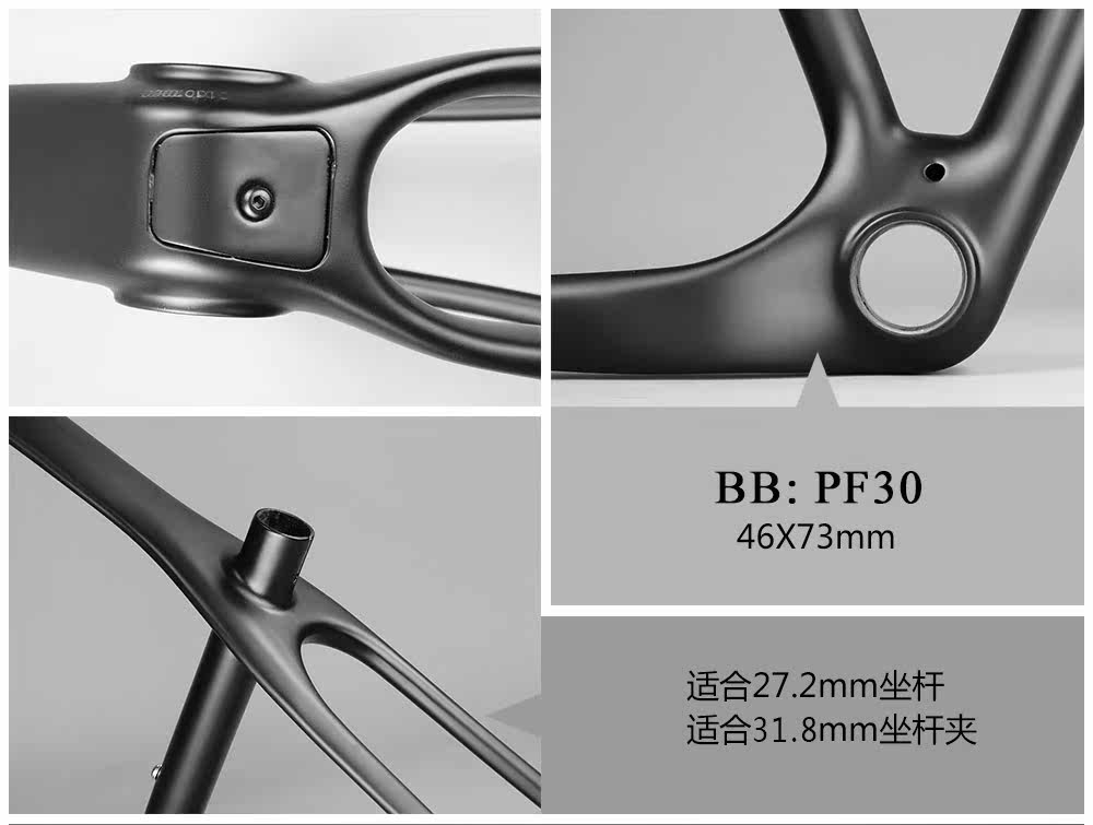 Promotional carbon fiber mountaineering bicycle frame 27 er off-road vehicle 29er carbon frame with wrist set PF30 center axle