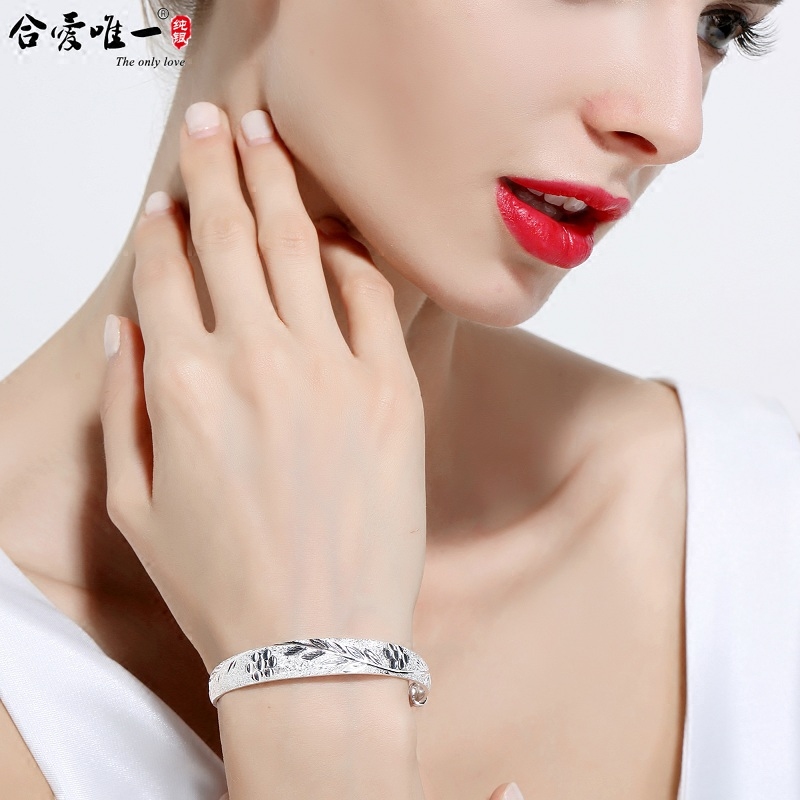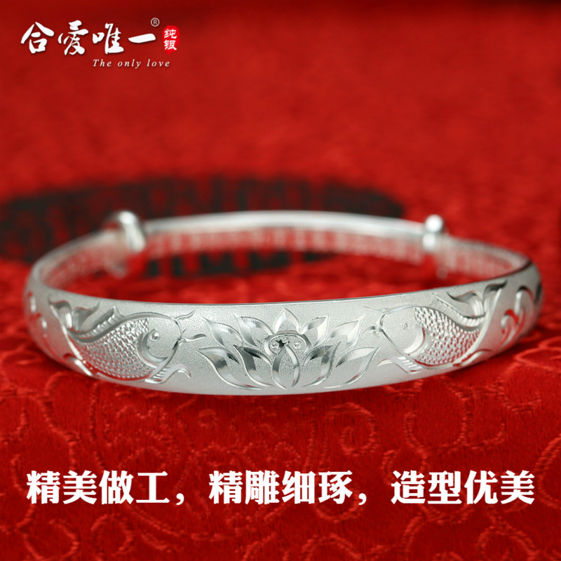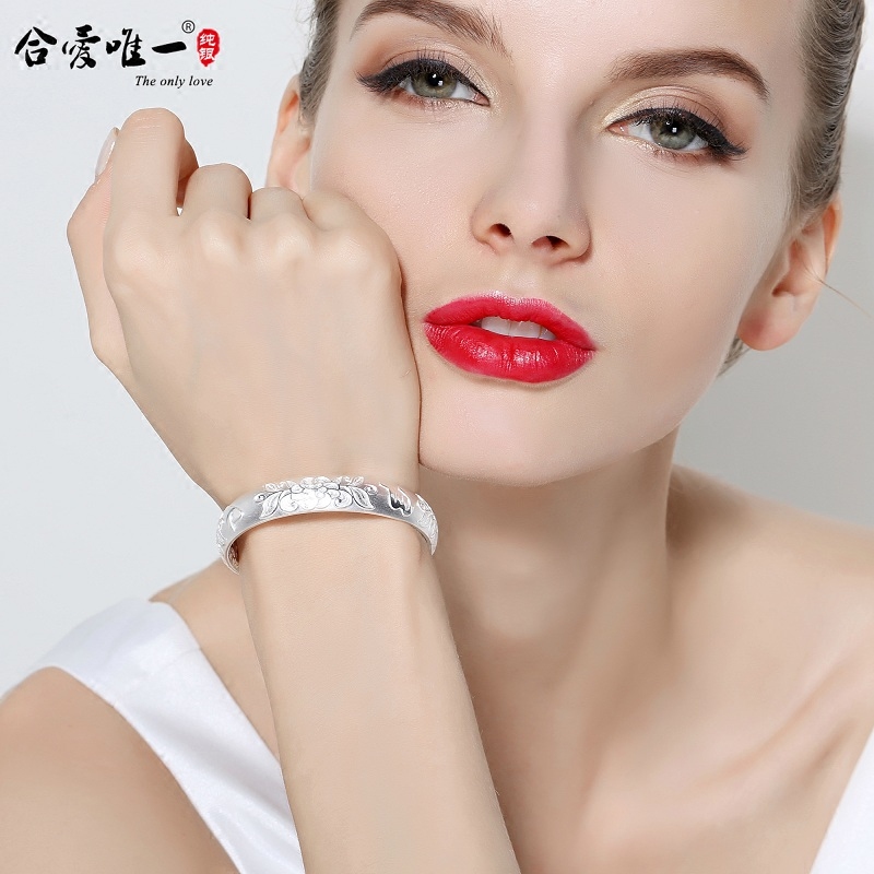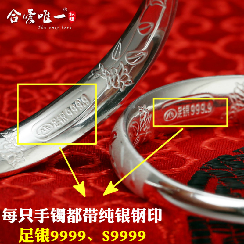 Pure silver S9999 Danfeng cherry blossom bracelet 42 gr (inner fu character) pure silver 9999 Danfeng cherry blossom bracelet 42 gr (inner warp) pure silver 9999 pinched and embossed lotus leaf lotus inner fortune