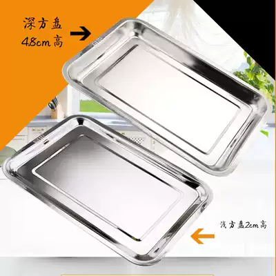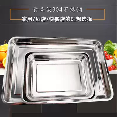 Thickened 304 non-magnetic stainless steel square plate, deep tray, rectangular household dinner plate, barbecue fish plate, large steamed meal plate