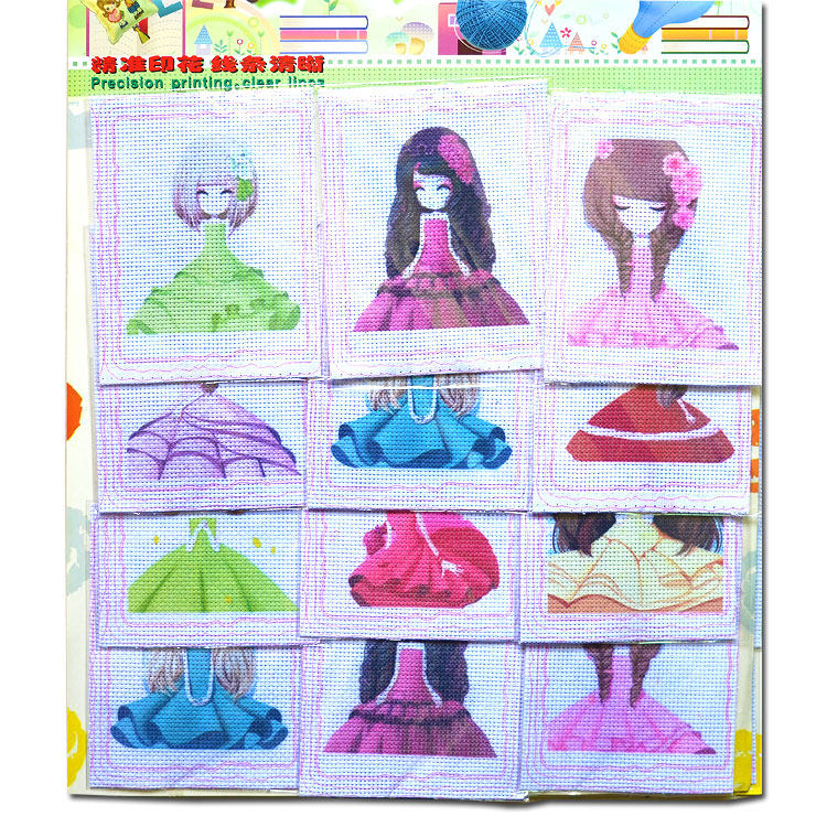 Huahua girl cross stitch cartoon cross stitch handmade educational toy hanging board