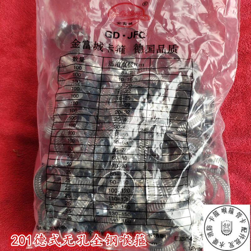 Jinfucheng brand thickened 201 width 9MM stainless steel German non-porous throat clamp clamp hoop pipe clamp