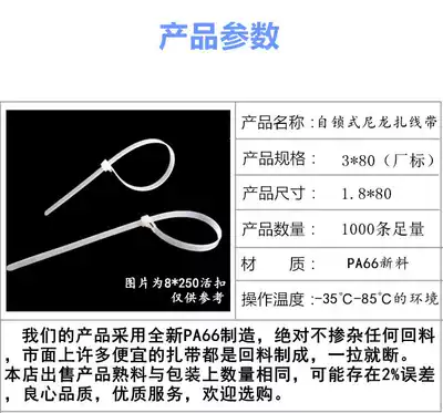 3 * 80mm white plastic self-locking nylon cable tie seal fixing plastic strapping belt direct wire