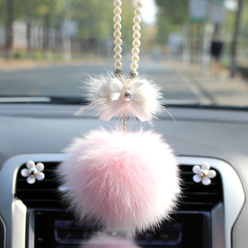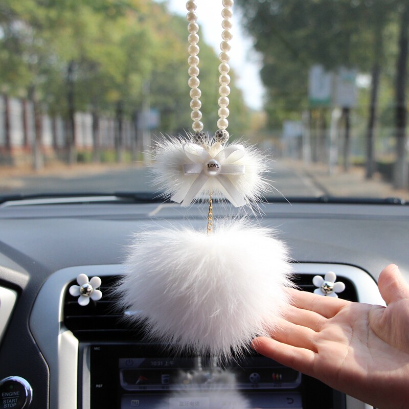 Fox fur car pendant upscale water mink wool bow tie in car Rear Mirror Pendant pendant hanging decoration Hair Wool Female