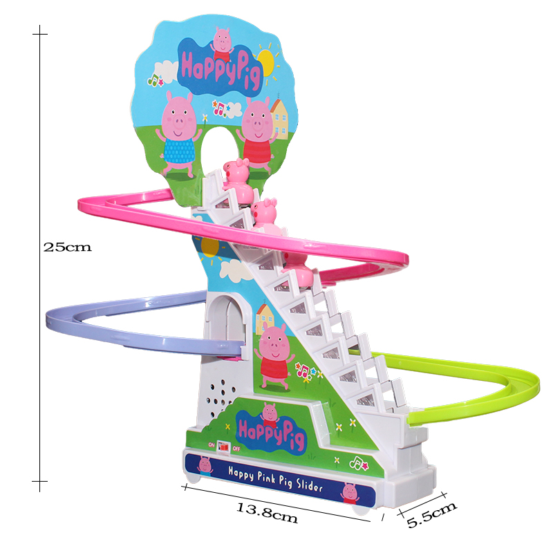 Baby pig electric stair climbing rail car Peppa Pig music light slide Kindergarten children's toy gift