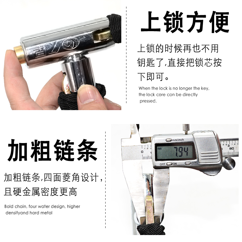 Tricycle motorcycle iron chain large lock strip door electric bicycle electric anti-theft extension car lock battery bicycle chain