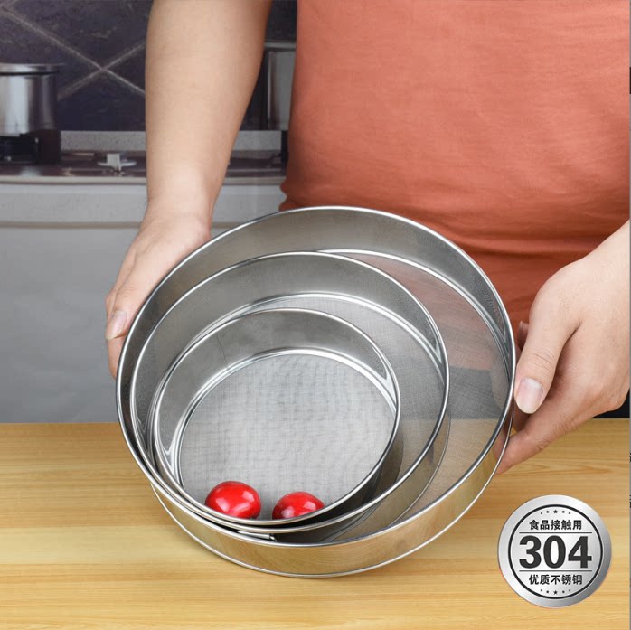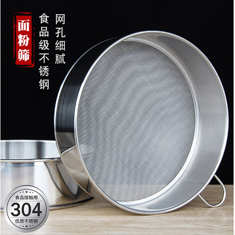 Round flour sieve Plastic mesh sieve bucket Stainless steel filter hand-held basket sieve Luo bucket sugar powder sieve sieve