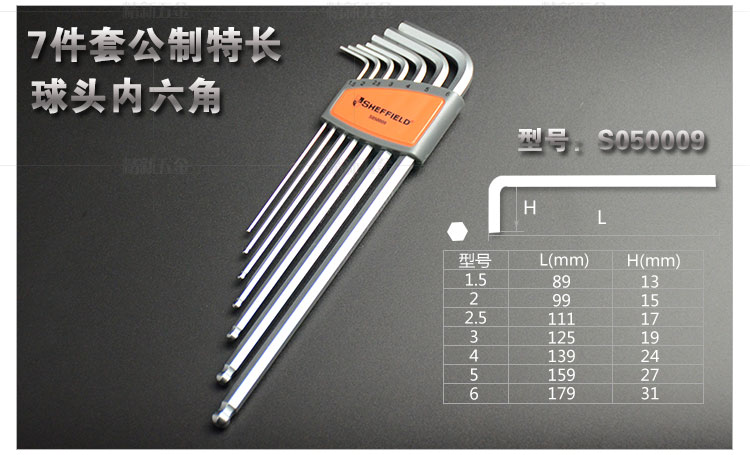 SHEFFIELD Steel Shield 7-Piece Metric Extended Hexagon Wrench S050002