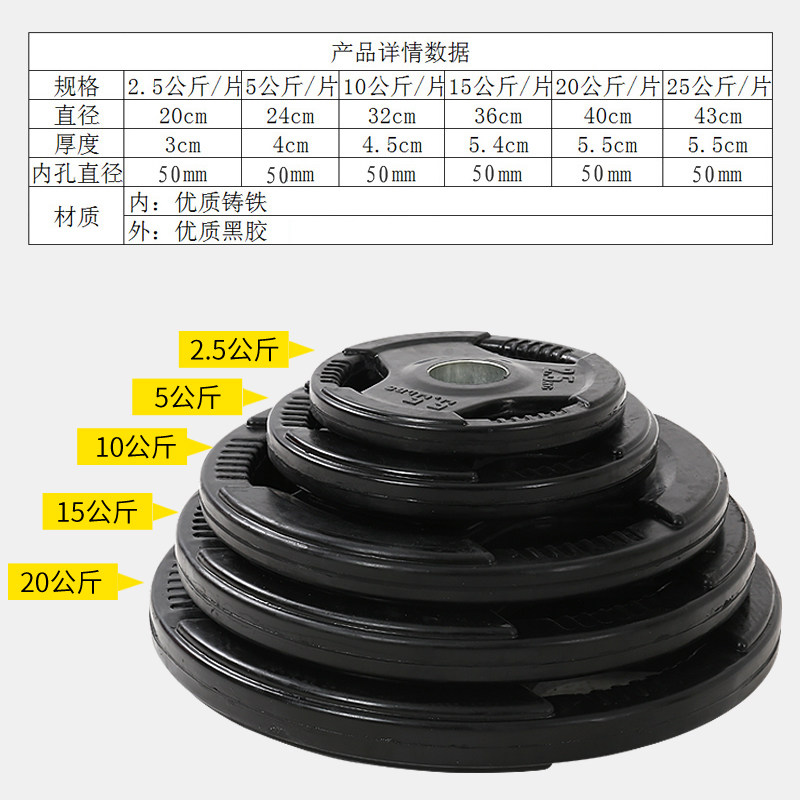 Rubber-coated barbell piece Three-hole hand grab piece large hole piece 5CM Olympic rod counterweight 2 5 kg 5 10 15 20 25kg