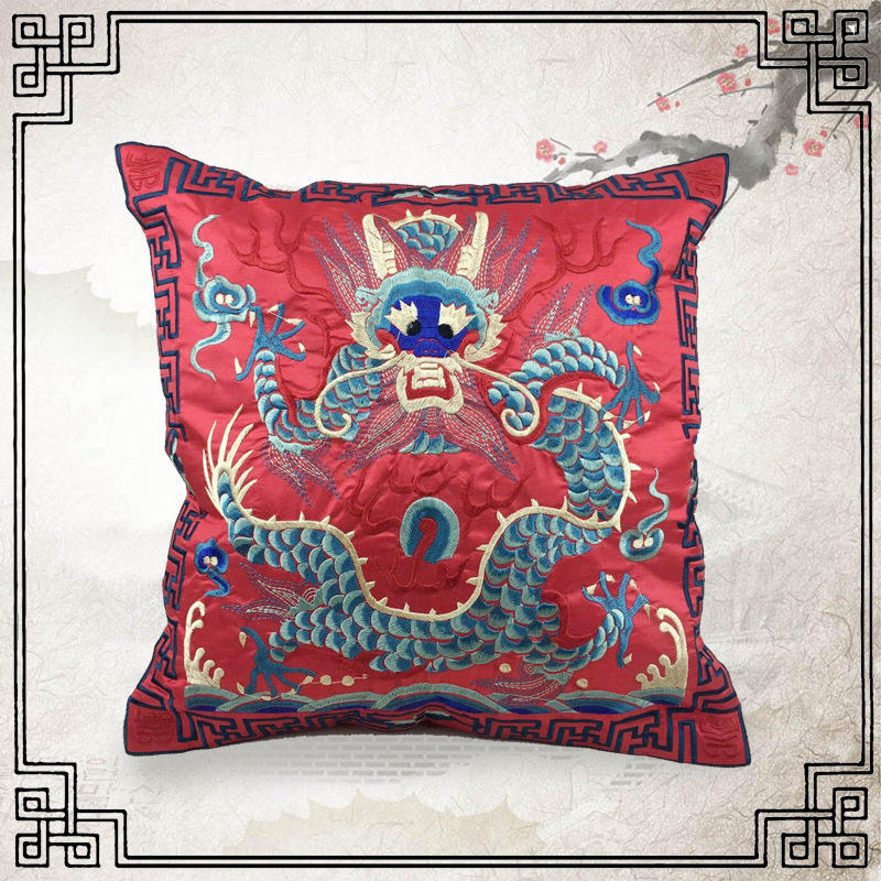 Embroidered supplementary back cushion Pillow Cover Ethnic Wind Sofa Hug Pillowcase Back Cushion Cover Silk Hug Pillow Without Core