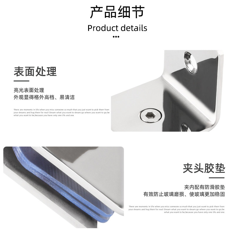 304 stainless steel glass fixed clip Bathroom door clip 90 degree glass clip Hyperlink code partition clip Mirror light