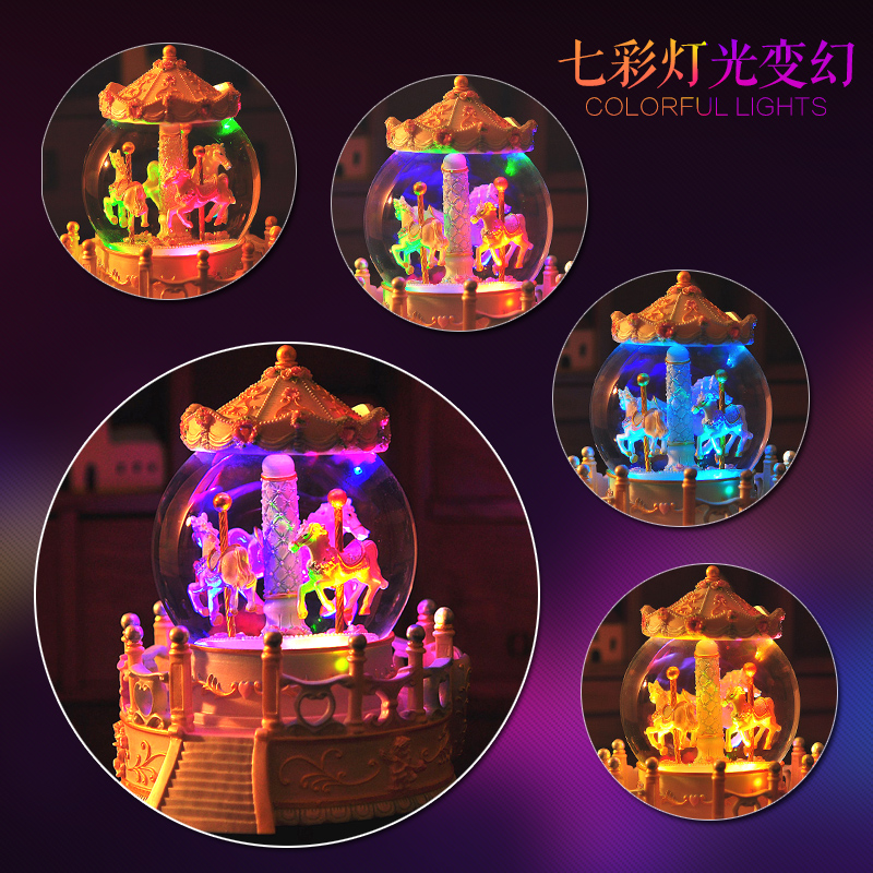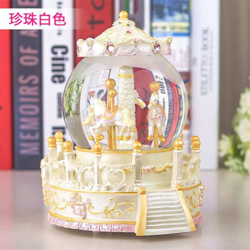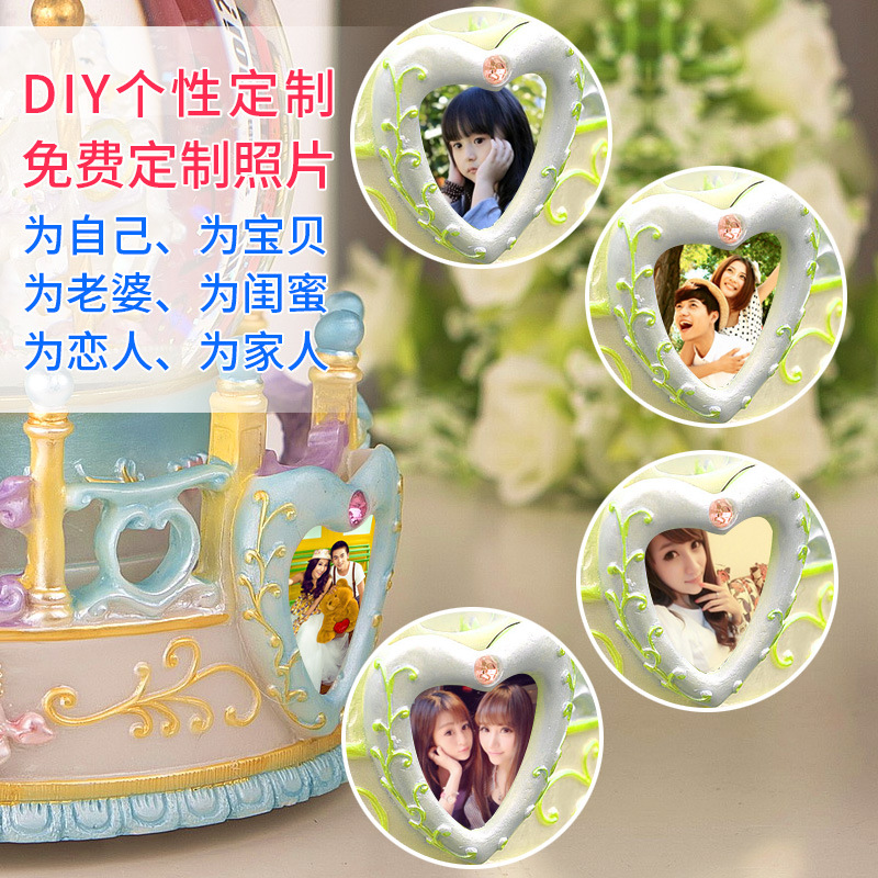 Music Box Custom Swivel Trojan Water Crystal Ball Sky City Octaonic Box Girl Children Happy Birthday