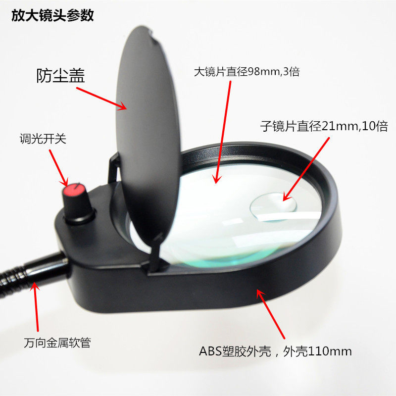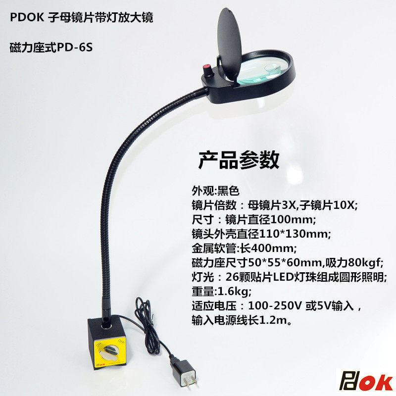 PDOK primary-secondary large lenses 10 times 3 times maintenance magnifier with lamp magnetic base metal hose magnifier PD-6S