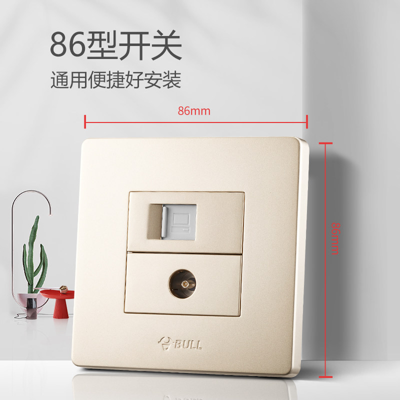 Bull switch socket TV computer network cable TV network panel CCTV TV TV socket gold