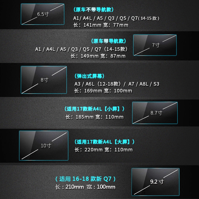 Applicable Audi screen toughened film A3 A4L A4L Q3 Q3 car interior Q2 Supplies Q5L Decorative Cling Film Q7 accessories