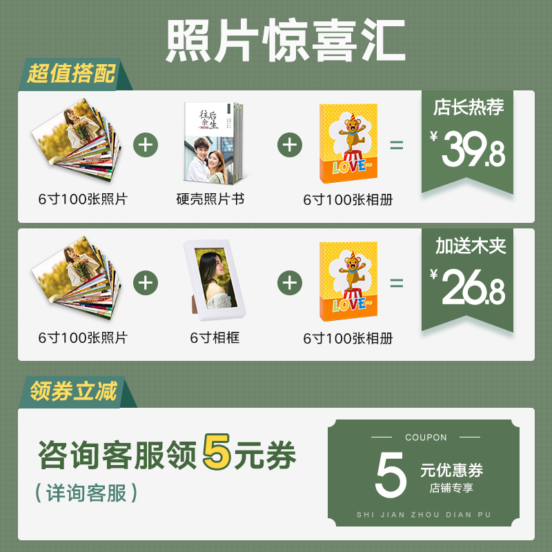 1 2 3 4 5 200 classic photos (large amount special offer) (collection consultation off 10 yuan) 200 upgrade photos + plastic seal (waterproof and moistureproof to keep for a long time) 200 photos + 200 large photo albums (combination special offer) (recommended) Large order special shoot ~ 50 classic photos (HD printing) (special price hot sale) 50 upgrade photos + plastic seal (waterproof moisture and anti-fading) ❤ 100 classic photos (1 day delivery) (collection consultation minus 5 yuan) 100 upgrade photos + plastic seal (waterproof and moistureproof and anti-fading) 100 upgraded photos + plastic seal (waterproof, moisture-proof and anti-fading). ❤ 100 washed photos (order to send a hard shell album) (take a few sets and send a few copies). ✅