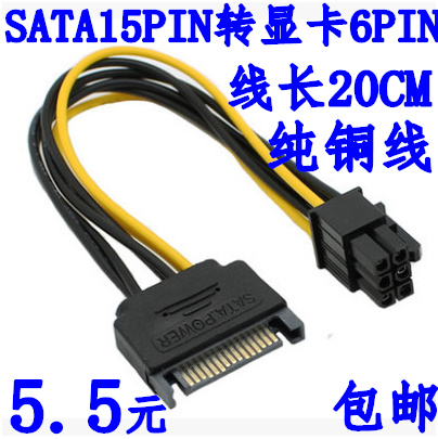 SATA power supply 15p turn 6P graphics card reverse power transfer line 15 pin independent display card power supply line 6PIN line