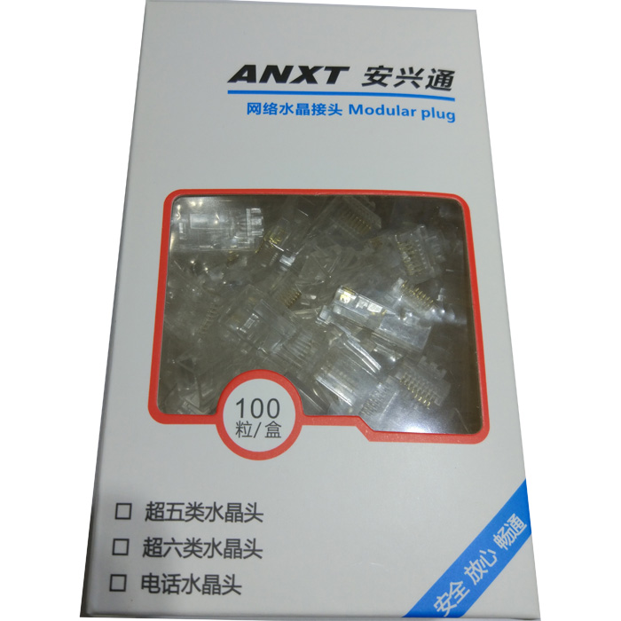 Anxingtong super five network crystal head RJ45 pure copper three-prong 8-core network line connector crystal head connector