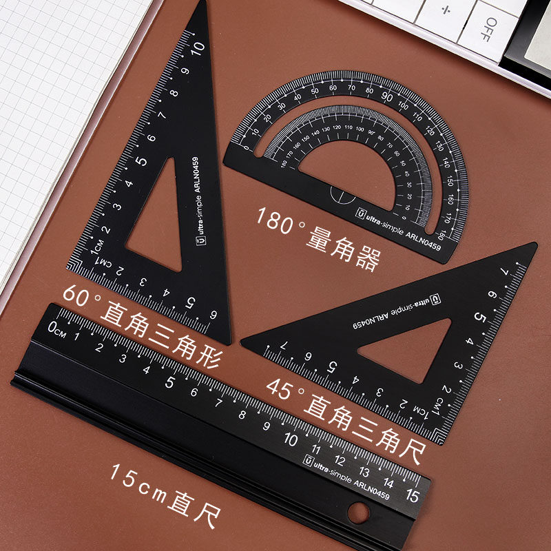 Morning light set ruler Aluminum alloy ruler Examination set Student stationery Triangle ruler Triangle plate protractor ruler Four-piece set ruler Middle and high school measuring tools Learning tools 96178 0459