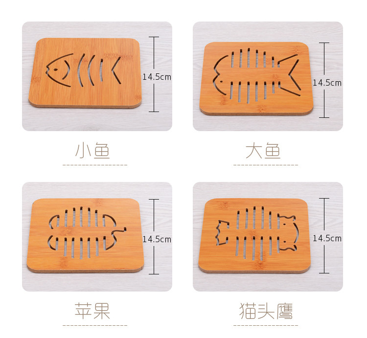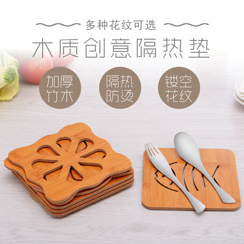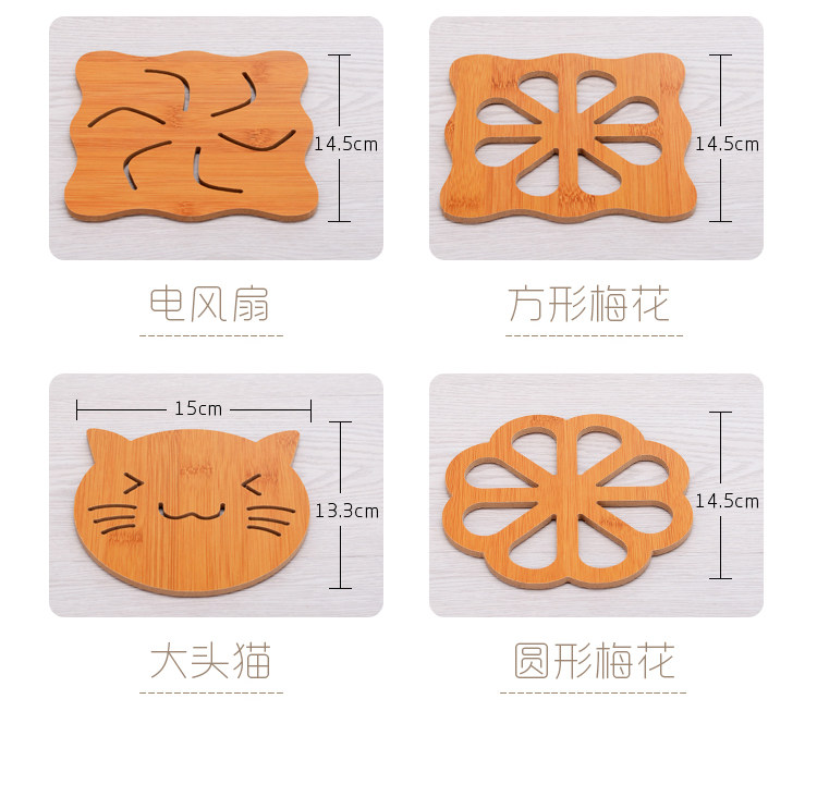 Placemat Wood Bamboo Cartoon Insulation Mat Table Mat Non-slip Pot Mat Creative Cute Mat Tea Coaster Bowl Mat Coaster