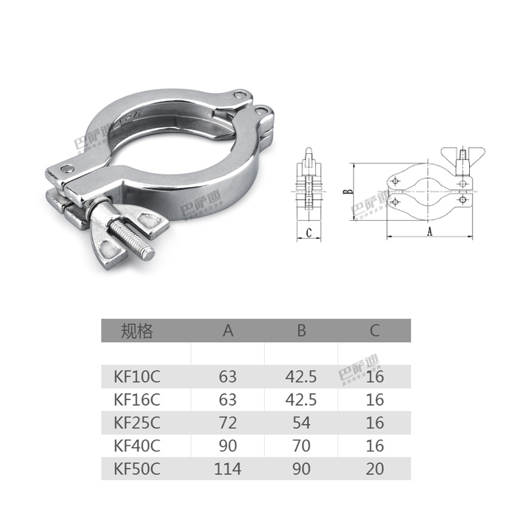 kf50 stainless steel clamp 304 bracket rubber ring
