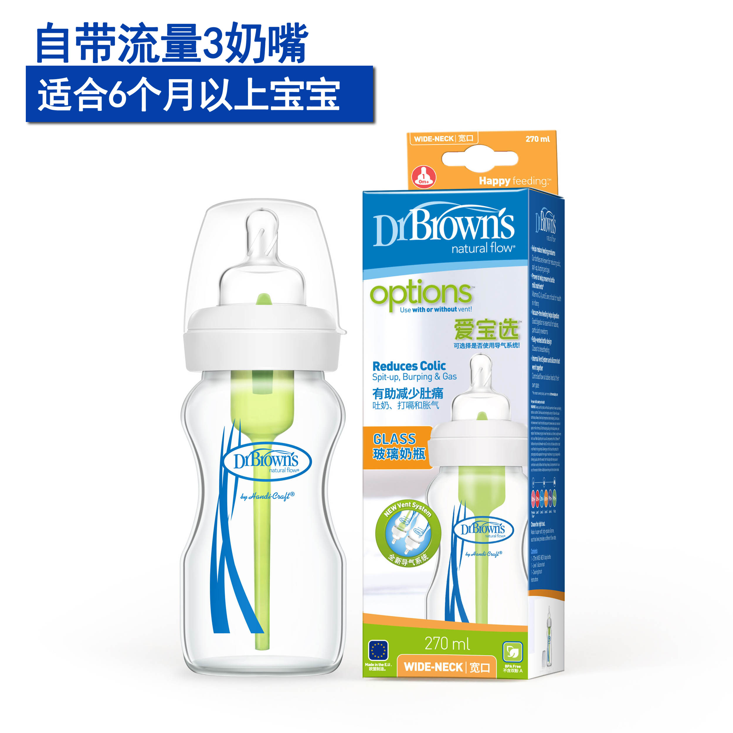 Dr. Brown bottle glass newborn baby baby anti-choking and anti-flatulence wide-caliber imitation breast milk weaning supplies