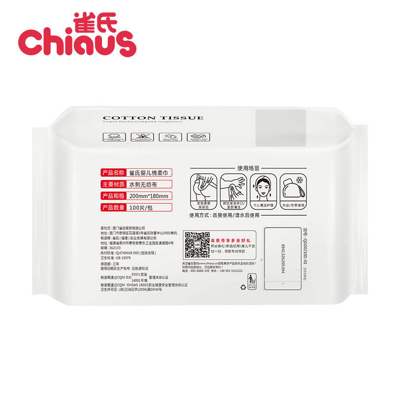 Bird's hand and mouth care towel Dry and wet towel Baby cotton soft towel 100 pumping*6 packs Soft dry and wet dual-use 600 pieces