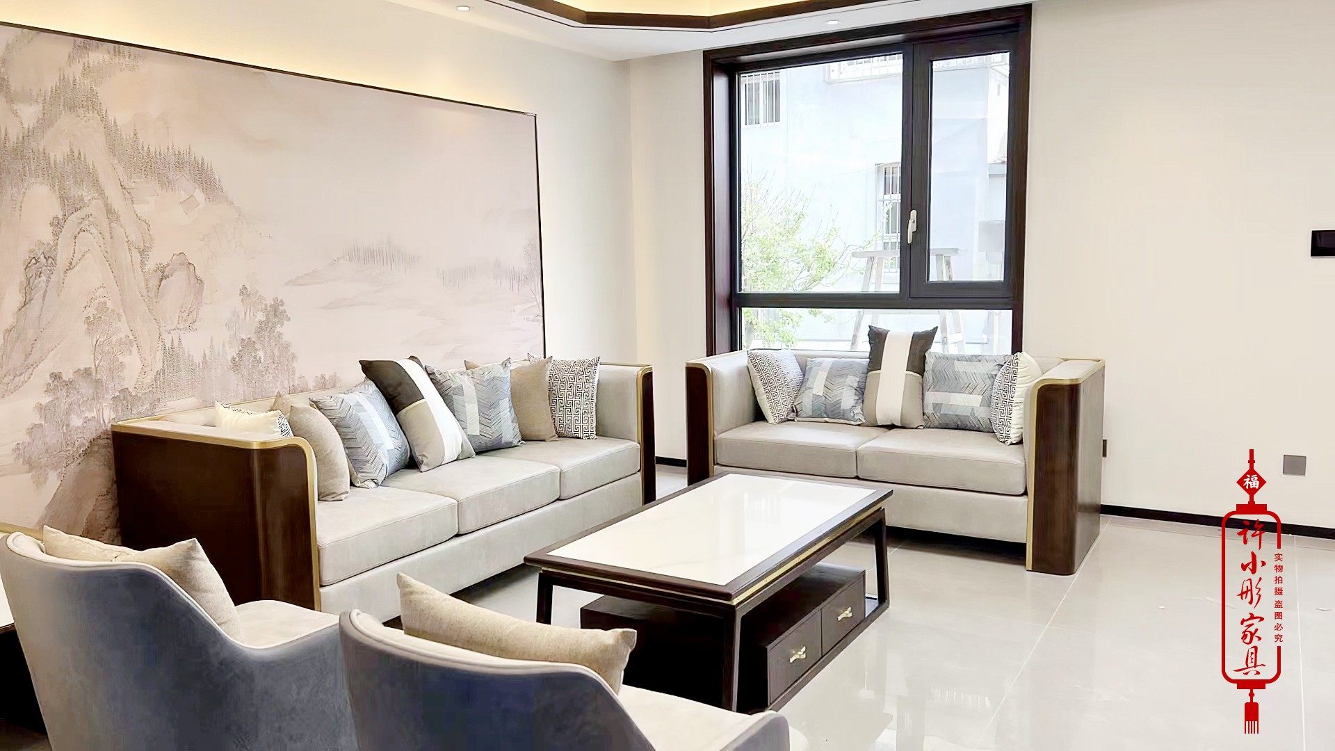 New Chinese solid wood fabric living room sofa tea combined modern furniture custom villa template room sofa