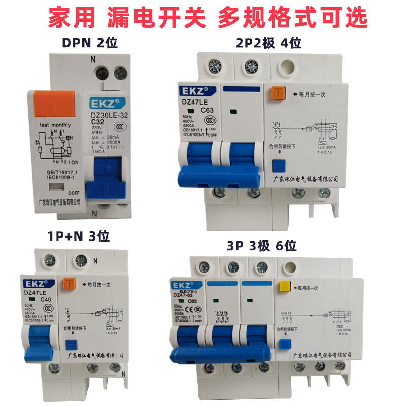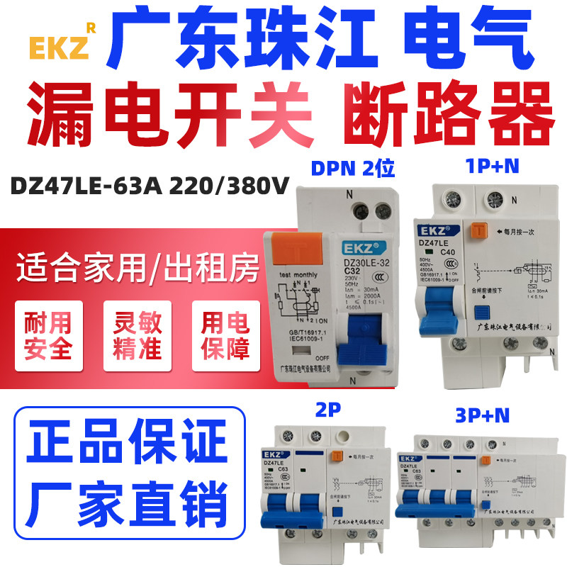 Pearl River leakage switch 32A household circuit breaker switch 2P 3P63a empty open leakage protection DZ47LE100A general explanation