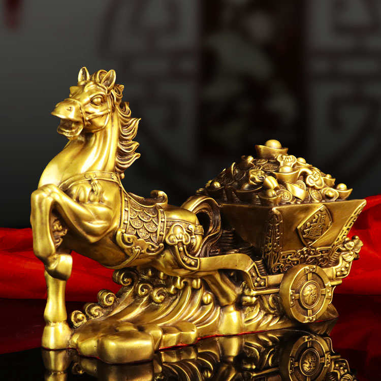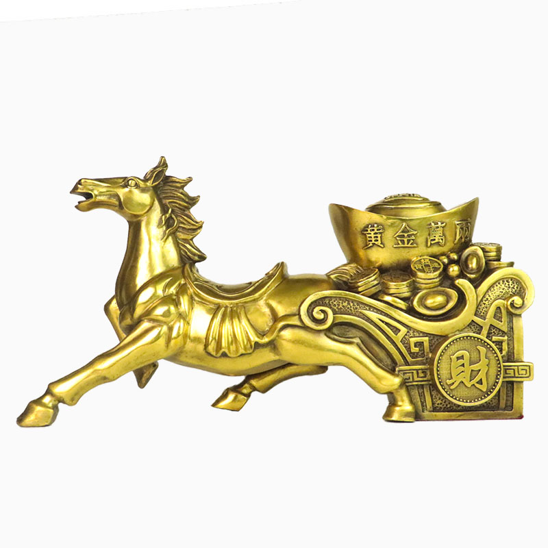 Pure copper horse-drawn carriage ornaments horse-drawn yuan BMW gold box zodiac horse opening gift Feng Shui horse lucky money horse