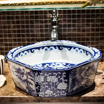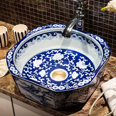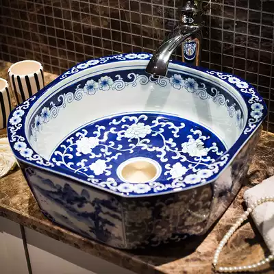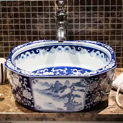 Ceramic washbasin on stage ceramic washbasin blue and white art Basin