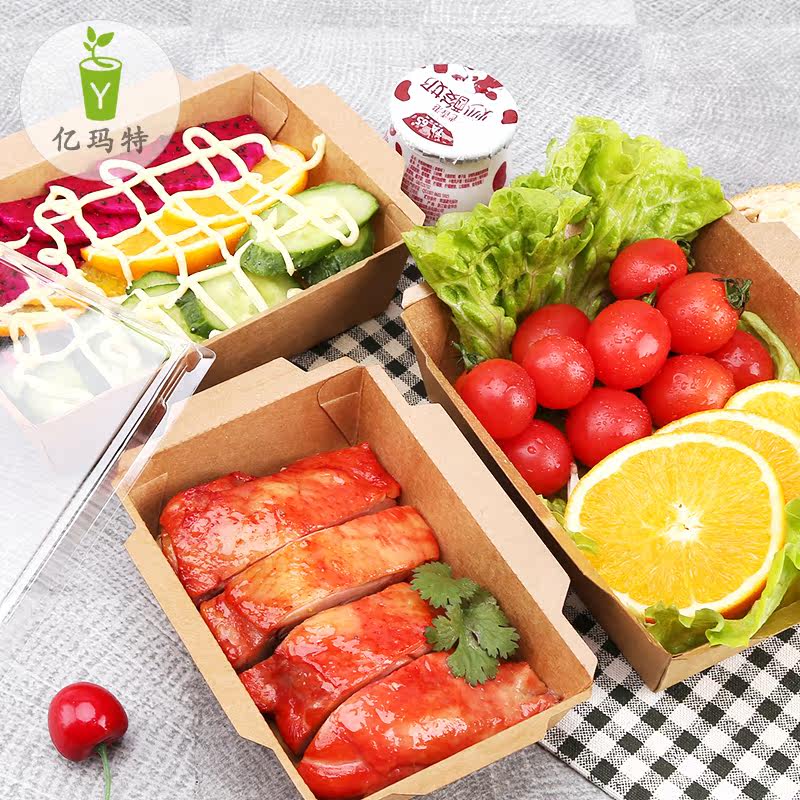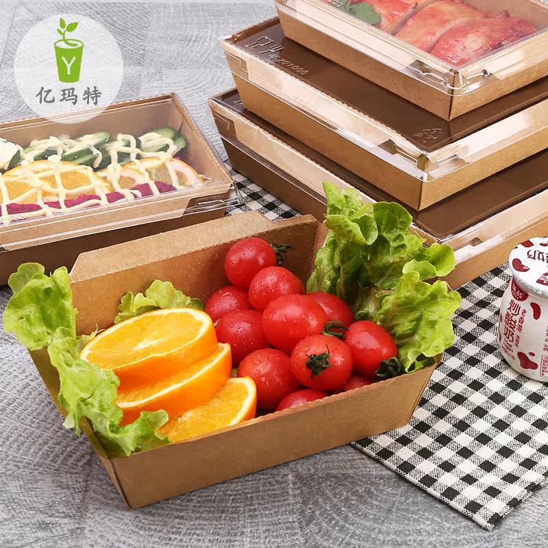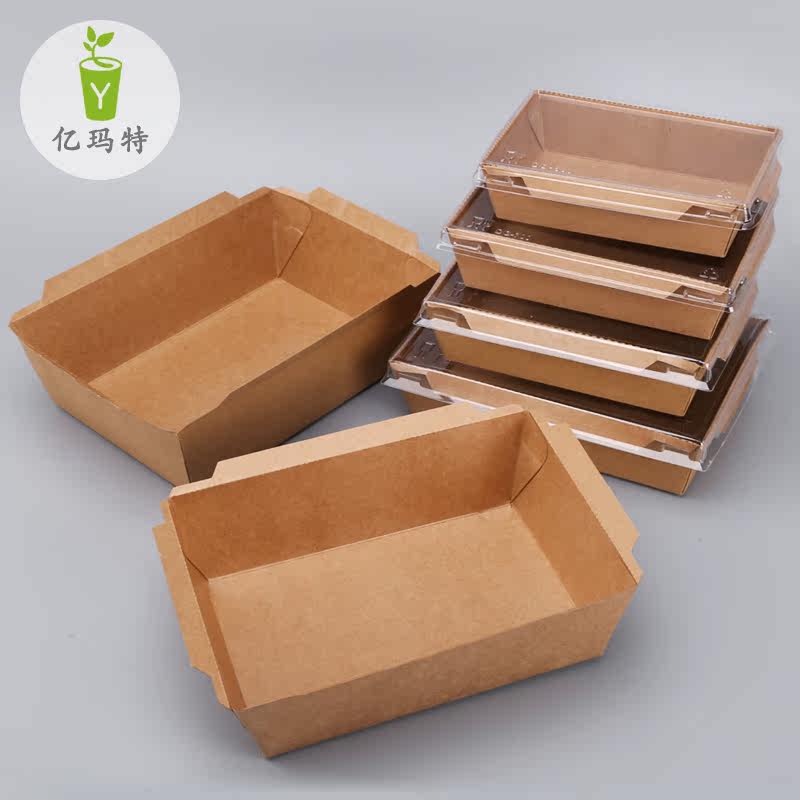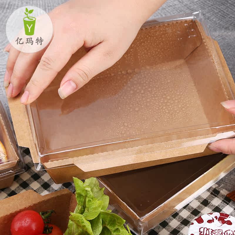 Disposable Kraft Aperitiv Box Rectangular Sushi Fruit Salad Case Transparent Takeaway Packing Case 100 sleeves