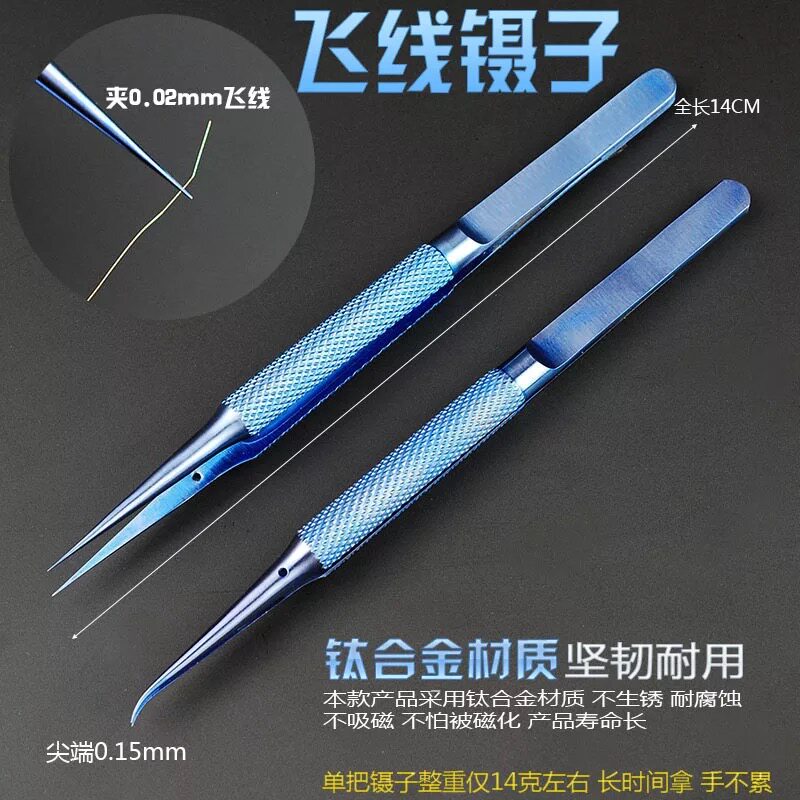 Fingerprint Flying Wire Straight Spike Tweezers (Blue) Fingerprint Flying Wire Bending Tips Tweezers (Blue) Stainless Steel Flying Wire Straight Tweezers Stainless Steel Flying Wire Bending Tweezers 2UUL Titanium Alloy Bending Tweezers 2UU Titanium Alloy Straight Tweezers