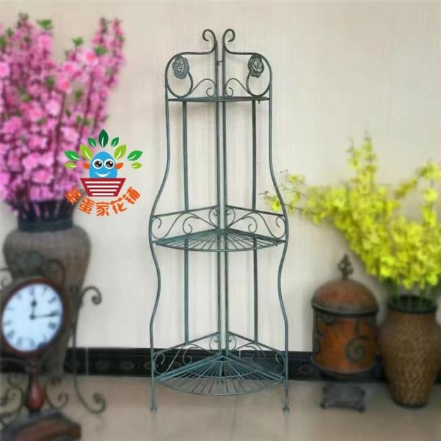 Special offer European-style wrought iron rose corner three-tier flower pot rack floor-to-ceiling rack succulent retro old groceries