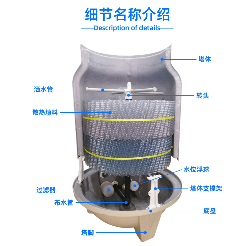 Factory direct sales cold storage unit cooling tower 8T-200TR ton round glass cold water tower small industrial cooling tower