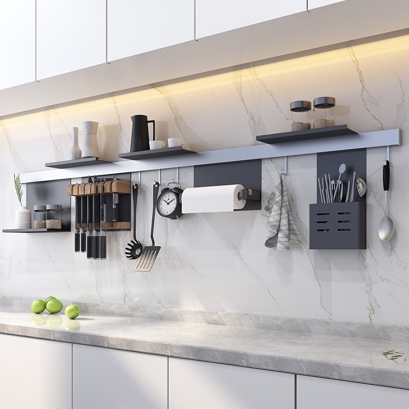 Kaiying kitchen shelf wall-mounted non-perforated space aluminum storage rack pendant seasoning products knife rack pot cover rack