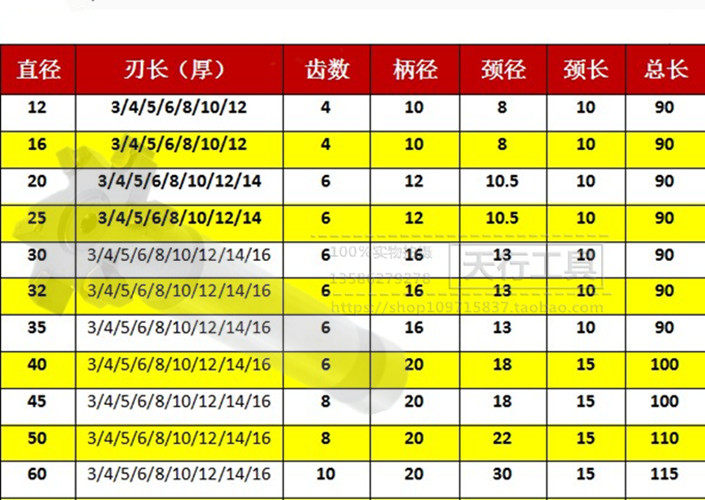 12 * (blade thickness 3 4 5 6mm) * 10 * 9012 * (blade thickness 8 10 12mm) * 10 * 9016 * (blade thickness 3 4 5 6 mm
