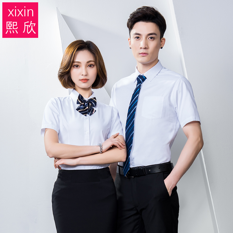 Men and women with the same short-sleeved white shirt tooling work clothes Shirt suit Summer interview hotel work clothes Business formal clothes