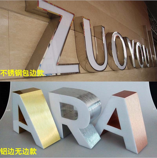 Mini luminous word resin boundless word led stainless steel back luminous word acrylic advertising sign door head custom