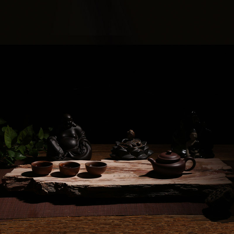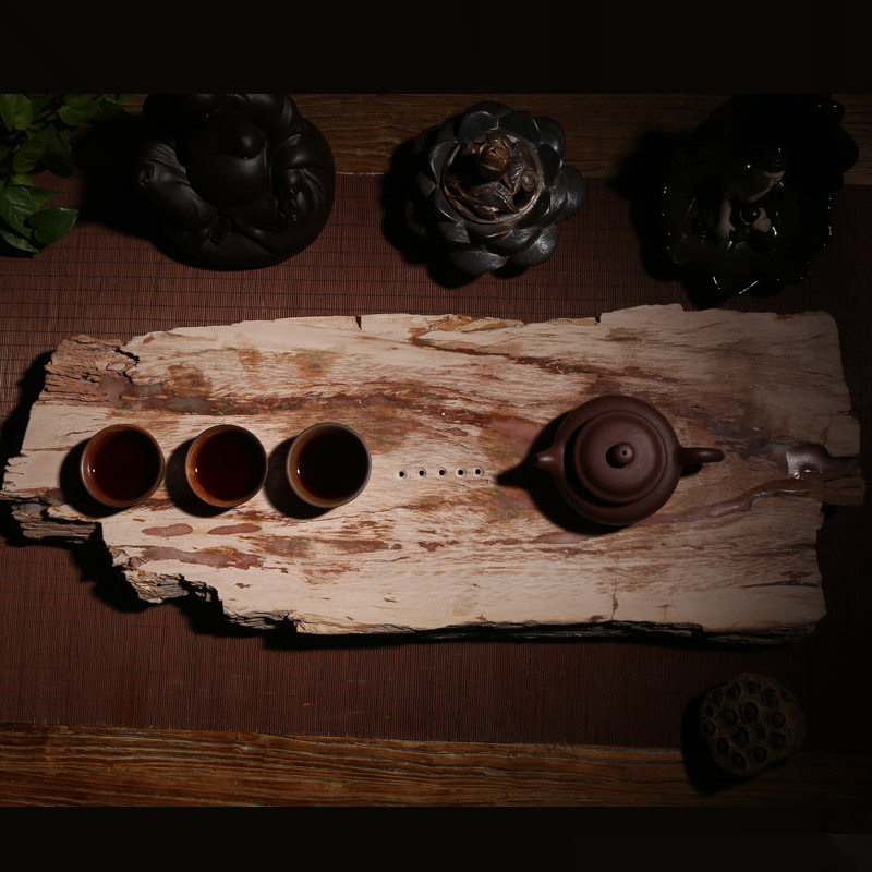 Natural stone tea plate large wooden fossil household tea table whole jade tea plate can collect art