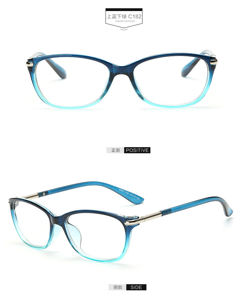Women's Classic Fashion Flat Mirror 8090 Black Blue Amber Color Plate Alloy Spectacle Frame Spring Legs Can Be Worthy Of Myopia