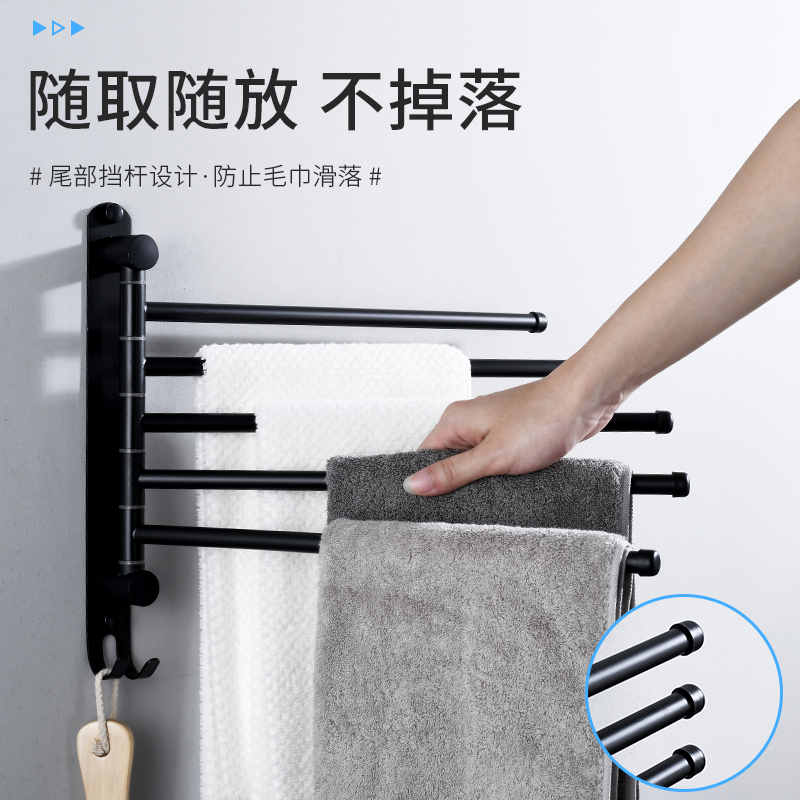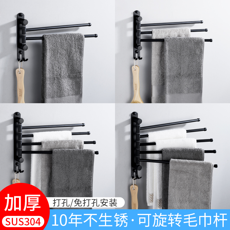 Bathroom hanging towel rack active towel rod 304 stainless steel nail-free swivel multi-rod airing towel dressing room pendant