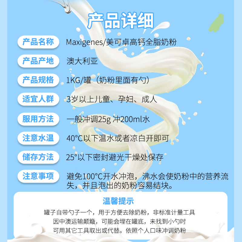 Macixel Maximus Blue Fat Milk Powder High Calcium Student Children Youth Adult Pregnant Women Full Fat 1kg